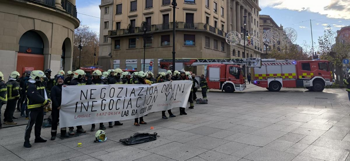 Suhiltzaileak eta babes zibileko langileak elkarretaratzea egiten ari dira astelehen honetan, Barne Zuzendaritza Nagusiak negoziazio prozesua hautsi duela salatzeko